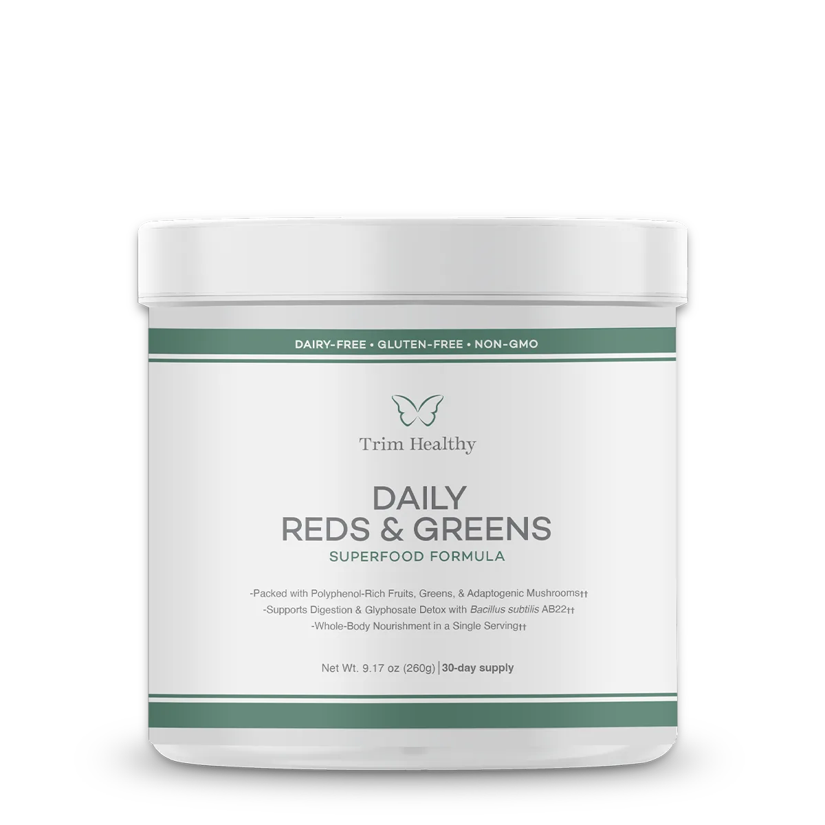 Daily Reds & Greens provides all the missing pieces your body needs to thrive. It’s your all-in-one scoop for gut health, gentle detox, and full vitality. Clinically studied AB22 probiotic and plant-based minerals help support the body’s natural detox pathways, aiding in the breakdown of toxins, including environmental and chemical residues such as glyphosate, while replenishing vital nutrients to keep you thriving every single day.