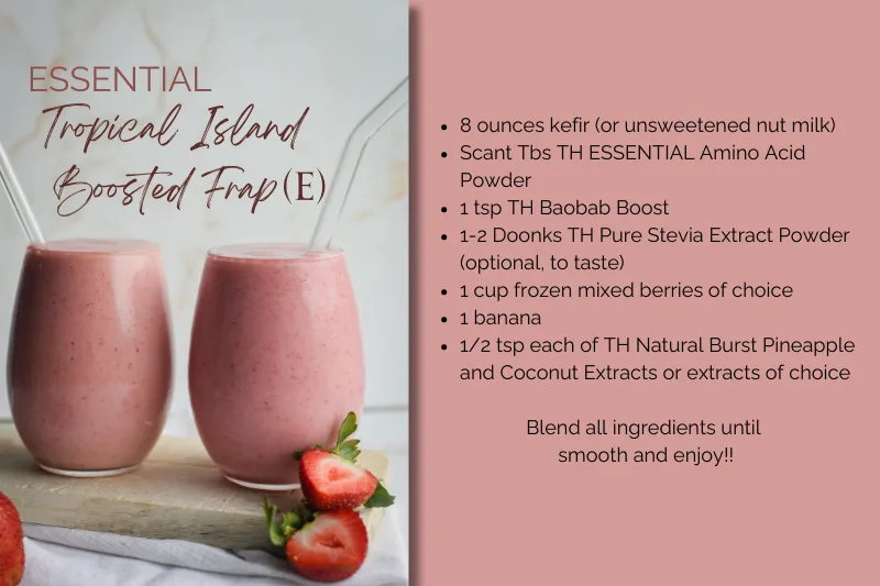 While we have tried many brands that are quite horrible, we find the lightly sweetened citrus flavor of ESSENTIAL to be pleasant and tasty. If you’re not crazy about the flavor, or just want to get your dose in quickly, mix with a smaller amount of water (4-6 ounces), chug it, then chase with more water. Any on-plan flavoring is perfectly fine to use and mixing it with lemon juice and a doonk of stevia is delightful! Another option is to add one of our Trim Healthy Hydrates flavors when you mix.
